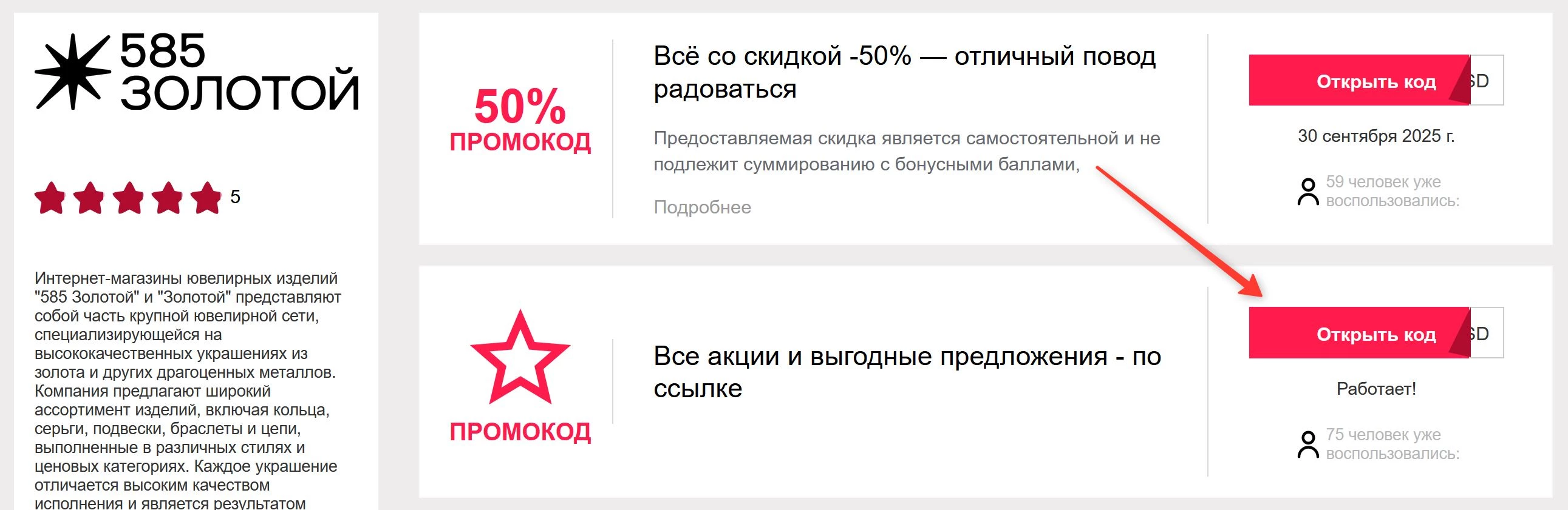 Для ювелирного бренда доступны специальные коды, которые позволяют получить дополнительную выгоду при заказе. Регистрация на платформе не требуется – достаточно открыть страницу бренда, выбрать подходящий купон, ознакомиться с условиями и применить его при оформлении покупки. Все коды проверяются вручную, что минимизирует вероятность использования устаревших или недействительных предложений.