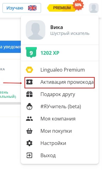 Как активировать промокод на сайте Lingualeo?
